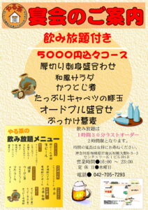 【歓送迎会・ご宴会に】飲み放題付き「5,000円込々コース」のご案内