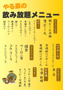 やる茶では、季節の集まりや大切な方とのご宴会に最適な、「飲み放題付き・税込5,000円」のポッキリ価格コースをご用意いたしました。